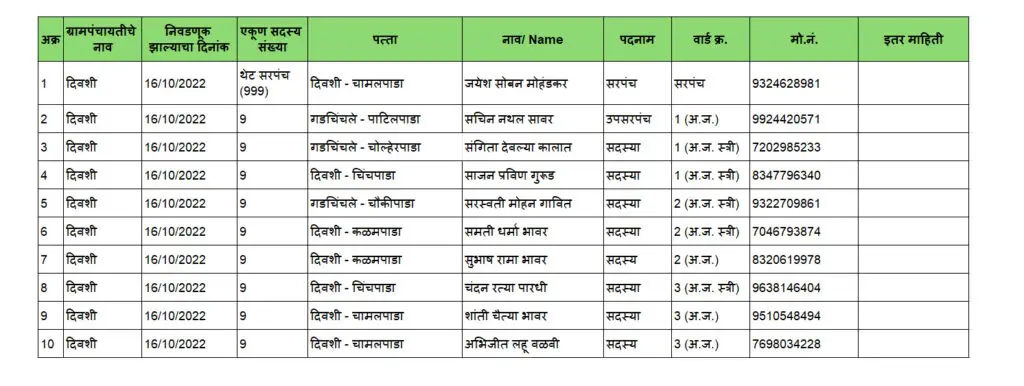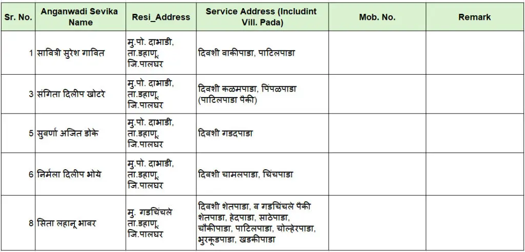 1.         Mr. Shantaram Janu Borsa              –    9325860625                               PickUp Vehicle